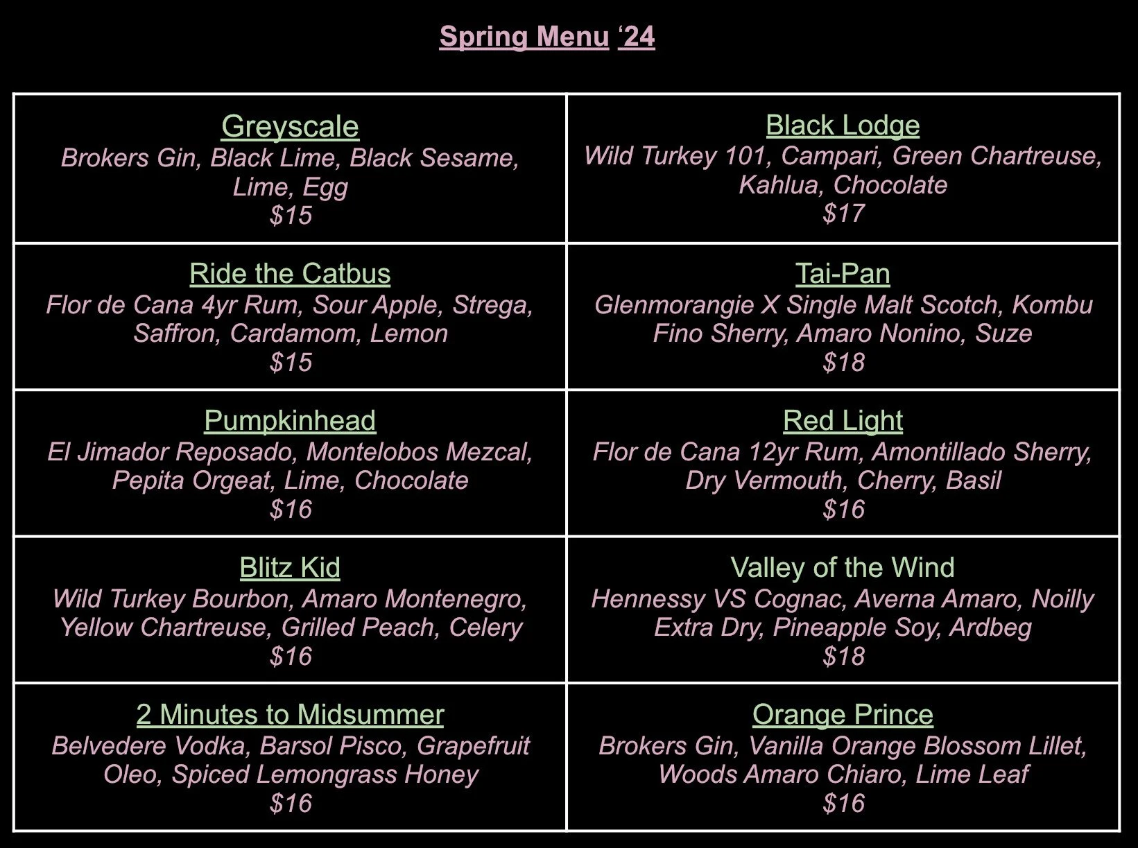 Spring ‘24 Menu